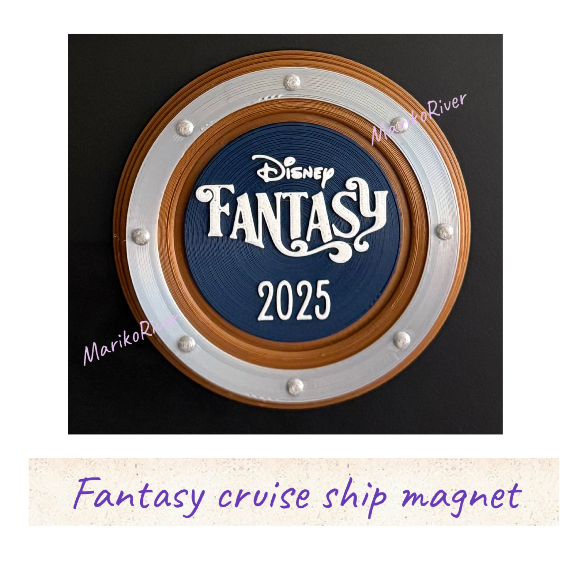 Perfect as cruise door decor, your vacation memento, or as a fish extender gift. White background with blue decorative accents and gold trim. Words are in dark blue color.